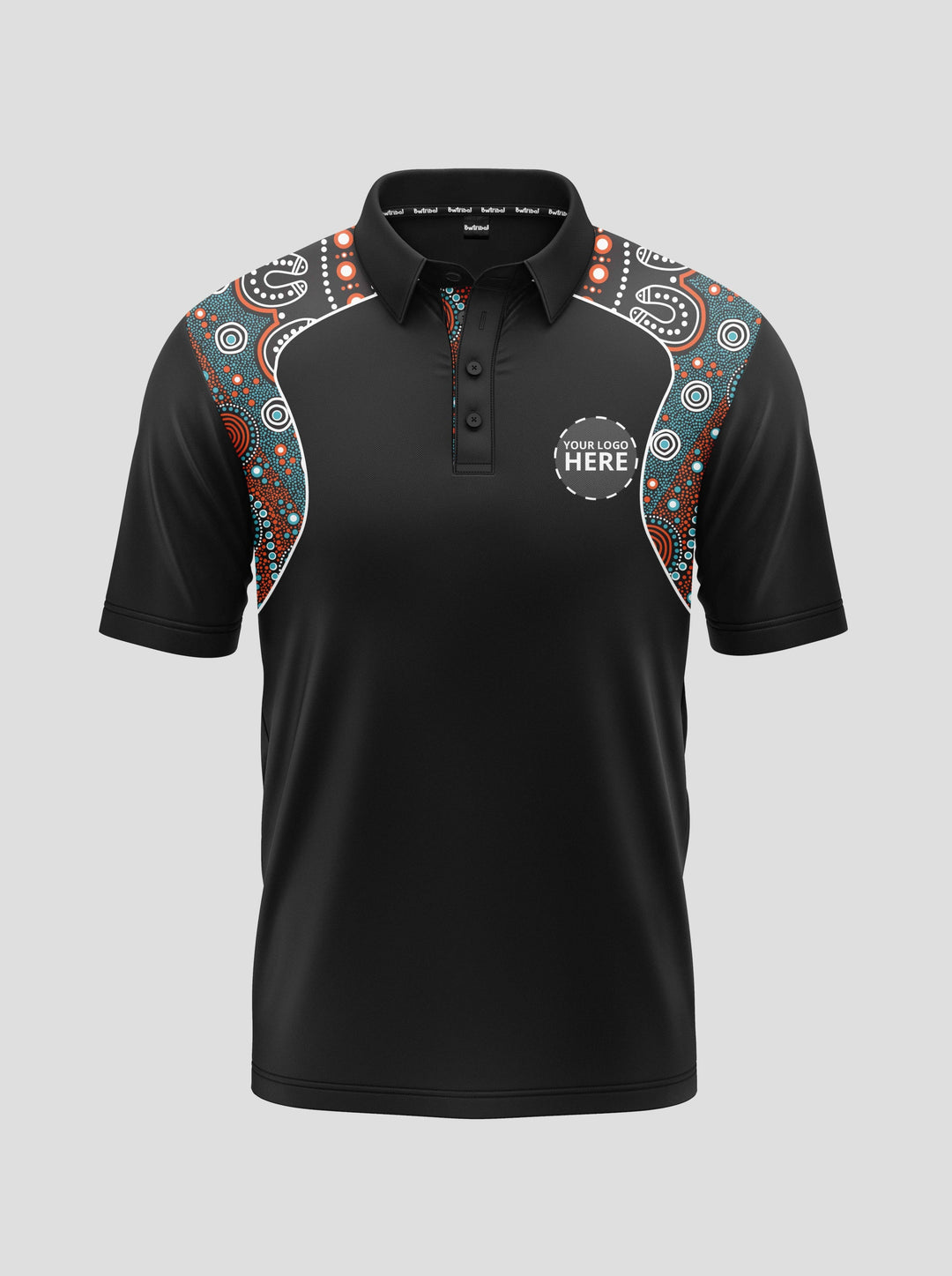 Our UPF 50+ fishing polos are designed for men who love the outdoors but want to stay protected from the sun. Made from quick-drying, breathable Coolpass polyester, these Indigenous art fishing polos offer ultimate comfort while featuring bold Aboriginal art. Whether you’re out on the water or enjoying a BBQ, these shirts keep you cool, stylish, and sun-safe, with built-in sun protection to block harmful UV rays.