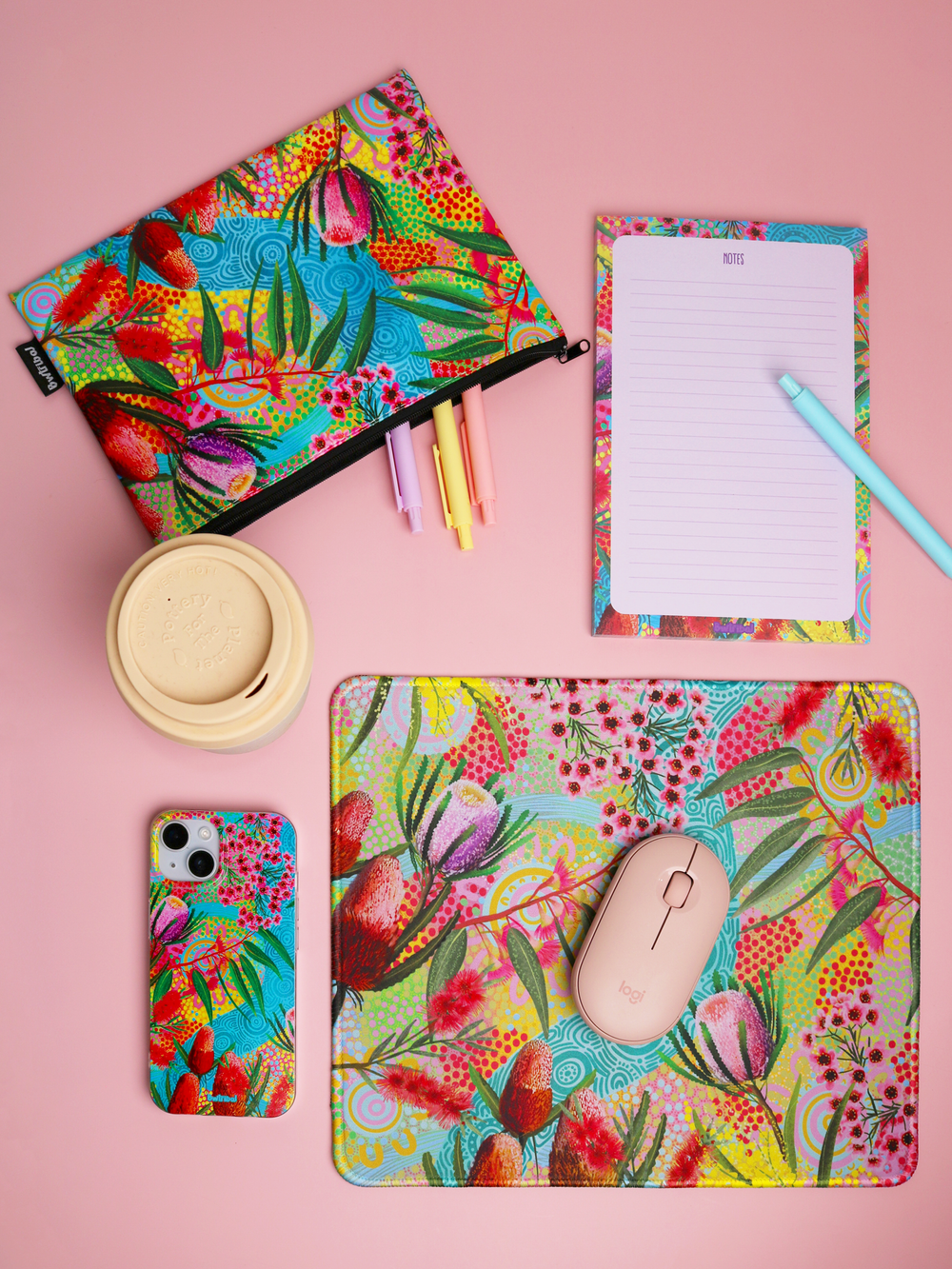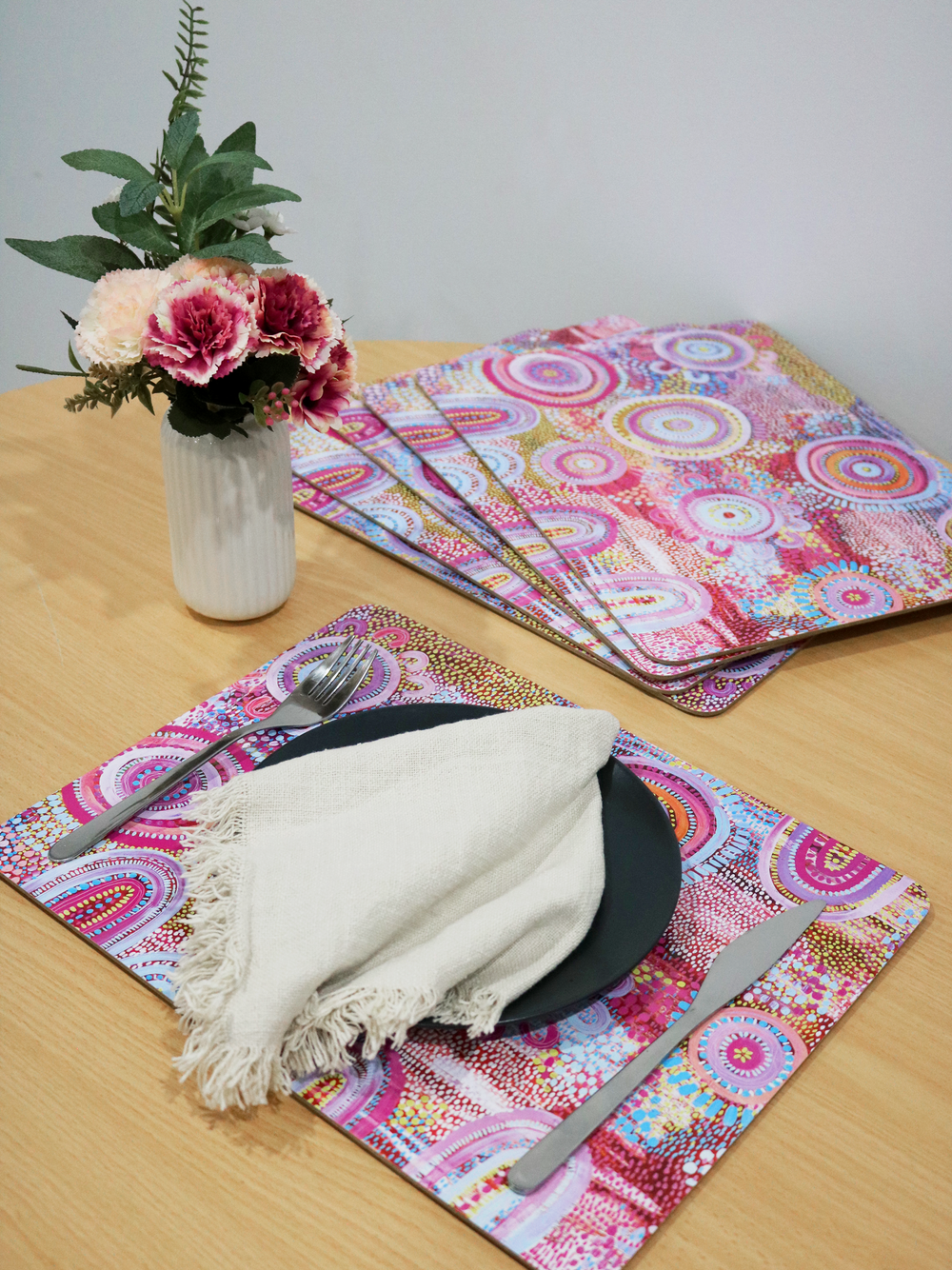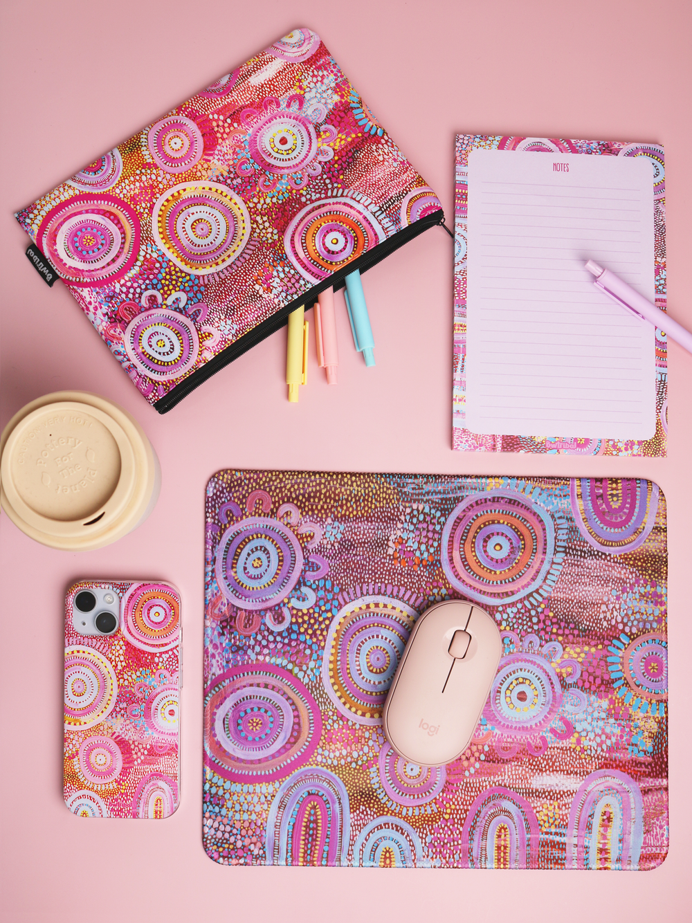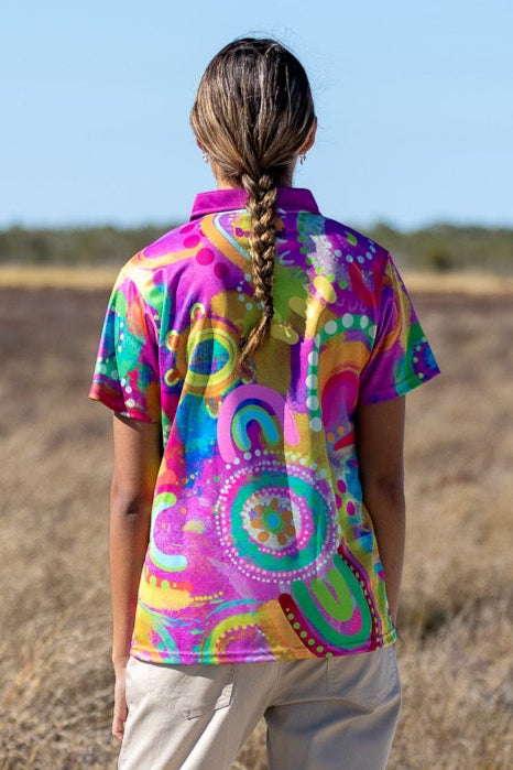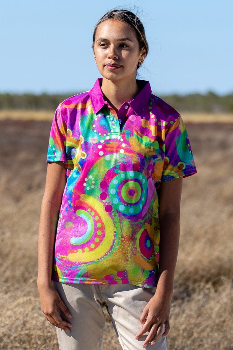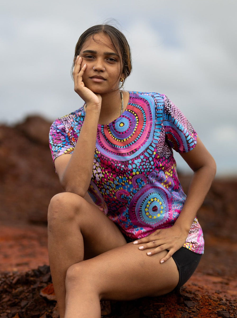 Born and nurtured on Kariyarra Country in Port Hedland, her art is a love letter to her community, a dream of a better world, and a celebration of her homeland. The iconic landscapes and brilliant colours of the Pilbara region are her muses, inspiring her daily.