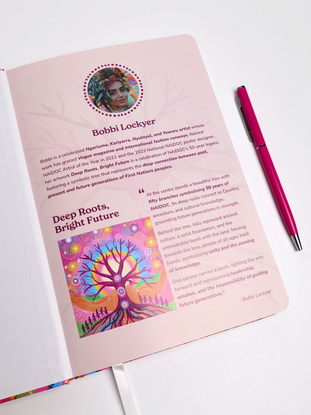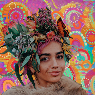 The first thing you notice about Bobbi’s artwork is the way she harnesses colour. There's a kaleidoscopic, psychedelic rainbow in almost every piece! Her work is not just a visual feast but a medium to voice social justice issues, particularly Indigenous and women's rights. Bobbi’s commitment to her community and her craft earned her the title of NAIDOC Artist of the Year in 2021.