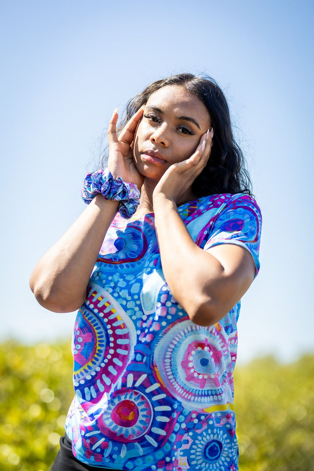 Bobbi Lockyer is a celebrated multidisciplinary artist and a mother to four incredible boys. A proud Ngarluma, Kariyarra, Nyulnyul, and Yawuru woman, Bobbi's connection to her Country and community is profound, and she channels this bond through her extensive art, fashion design, and photography portfolios.