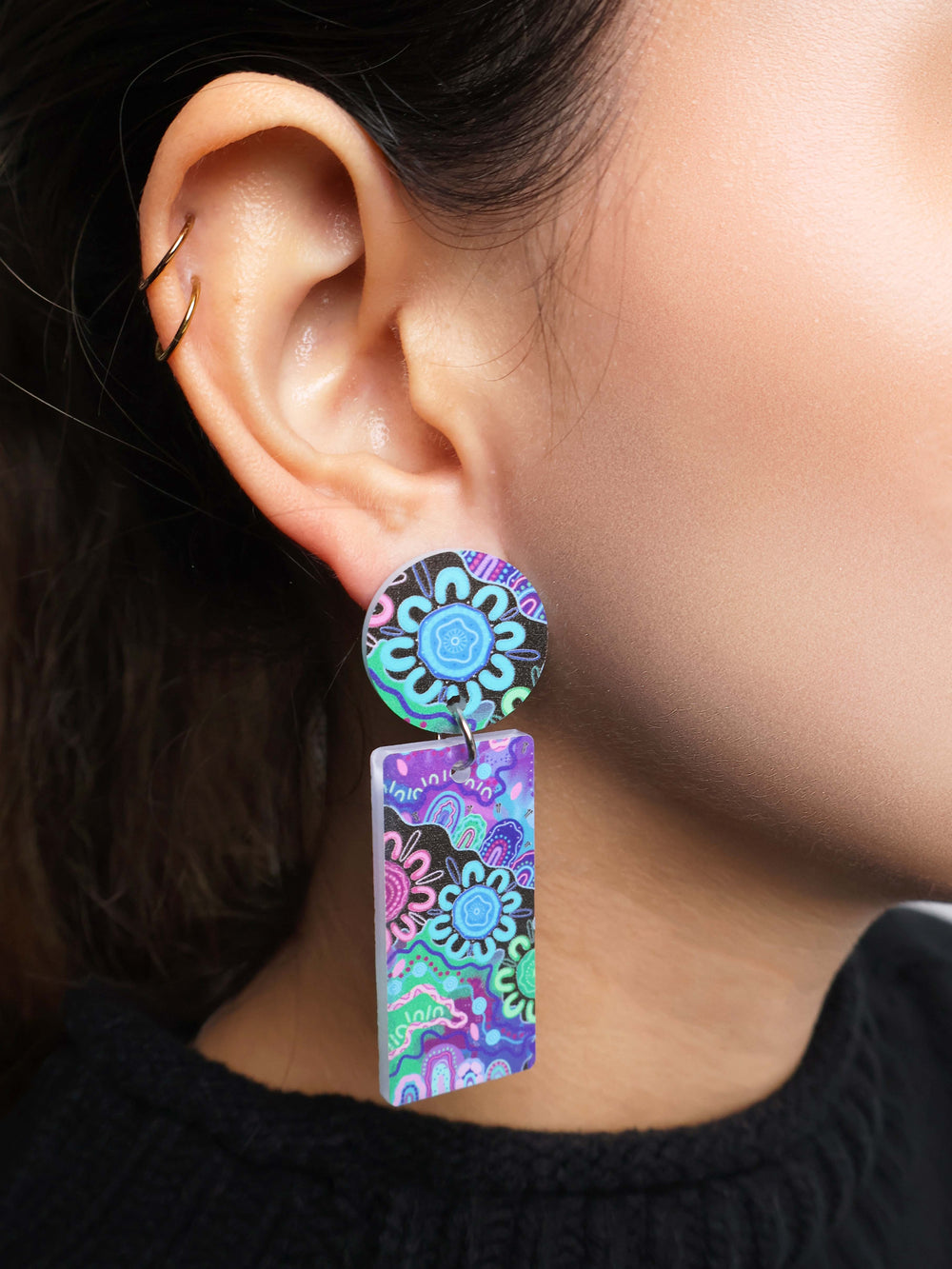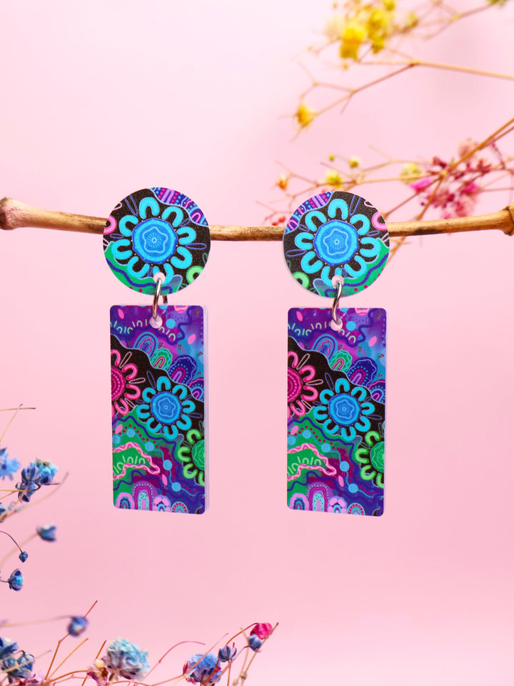 Add a pop of colour to your wardrobe with our statement drop earrings! These round earrings feature double sided printing and are made with a stud backing, offering support and a secure wear every time. Show off your love for art and culture with these statement earrings.