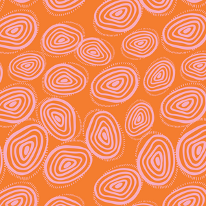 "Orange Dreamscape" is awash with rich, sunburnt orange, creating a captivating backdrop that evokes the glow of a desert sunset. Delicate pink concentric circles dance across the surface, their soft, rhythmic patterns reminiscent of ripples on a tranquil pond or the gentle undulations of a dreamcatcher.