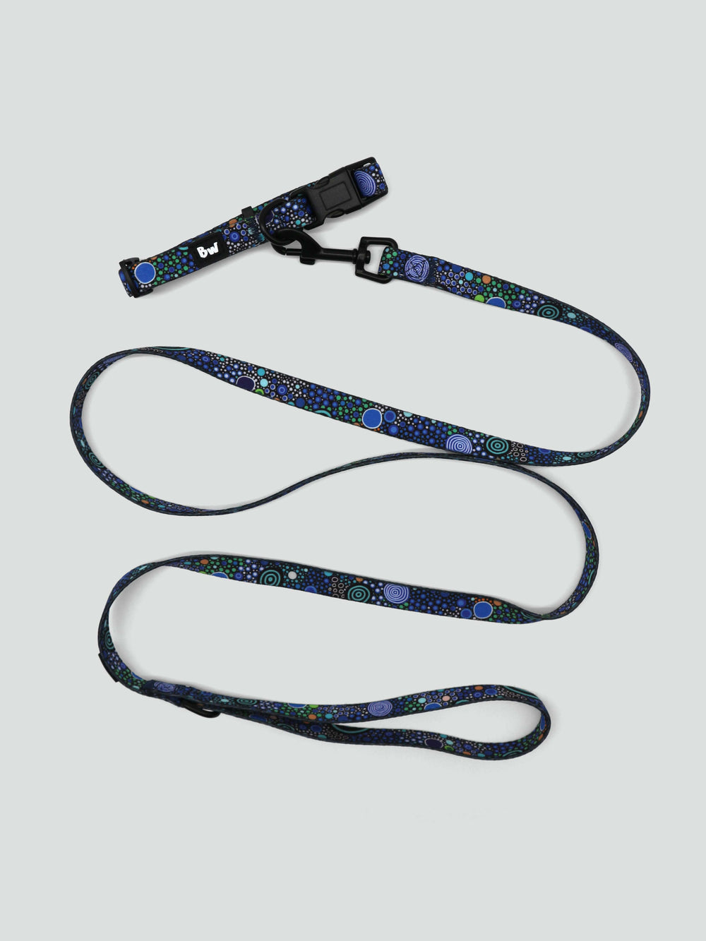Our ultimate pet accessories bundle! Featuring a leash, collar, and harness for dogs. Vibrant Aboriginal art and PVC BW Tribal logo on the collar, this set is perfect for your furry companion.