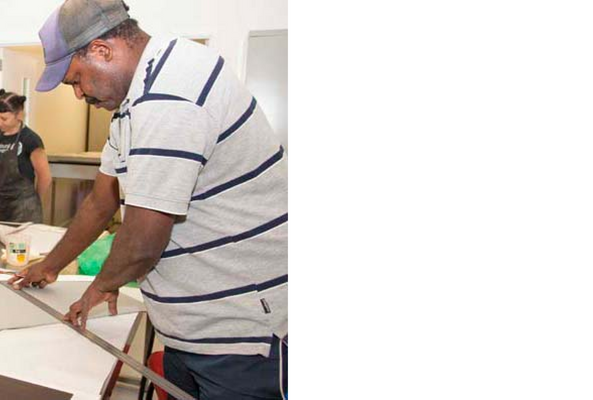 Joel Sam is a contemporary Indigenous artist residing in Cairns. He is a direct descendant of the clans of Saibai Island where he spent his early years before moving to Bamaga to complete high school, the place he calls home. His work explores his personal engagement with Torres Strait Island culture and family stories through the processes of printmaking and sculpture.