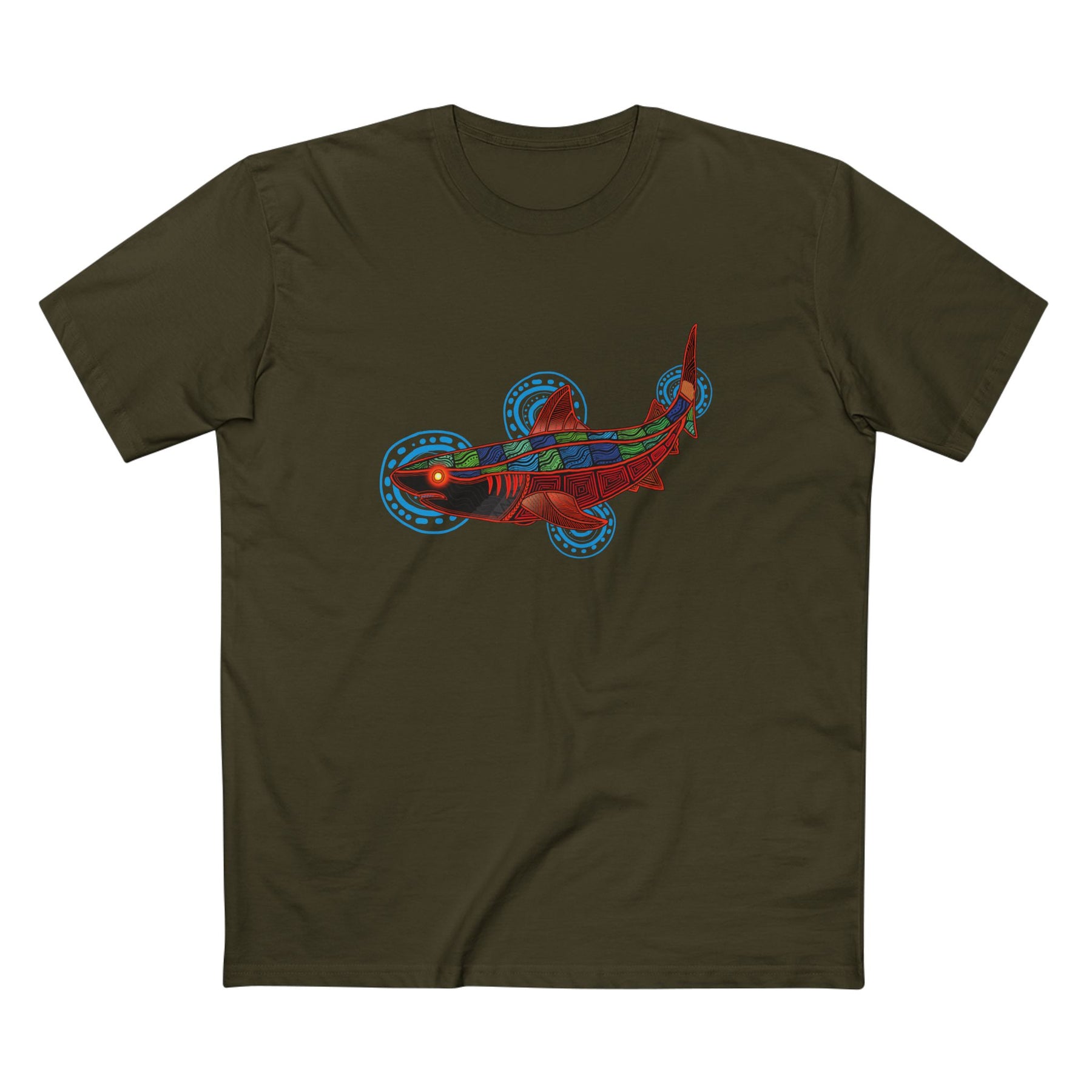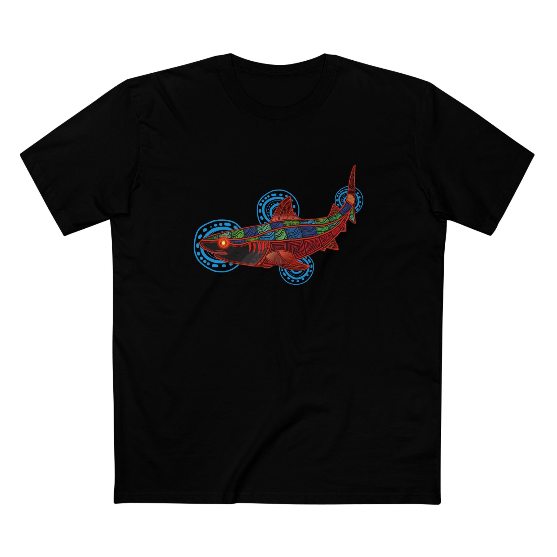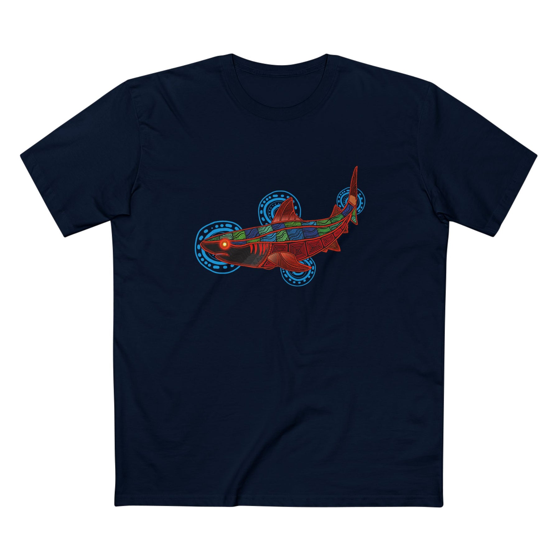 "Tiger sharks are one of the top predators of the ocean. They can sometimes move through the water unseen—much like potential threats that life may bring, often hidden and resulting in drastic circumstances. The artwork is a reminder to stay vigilant and observant in all aspects of life."