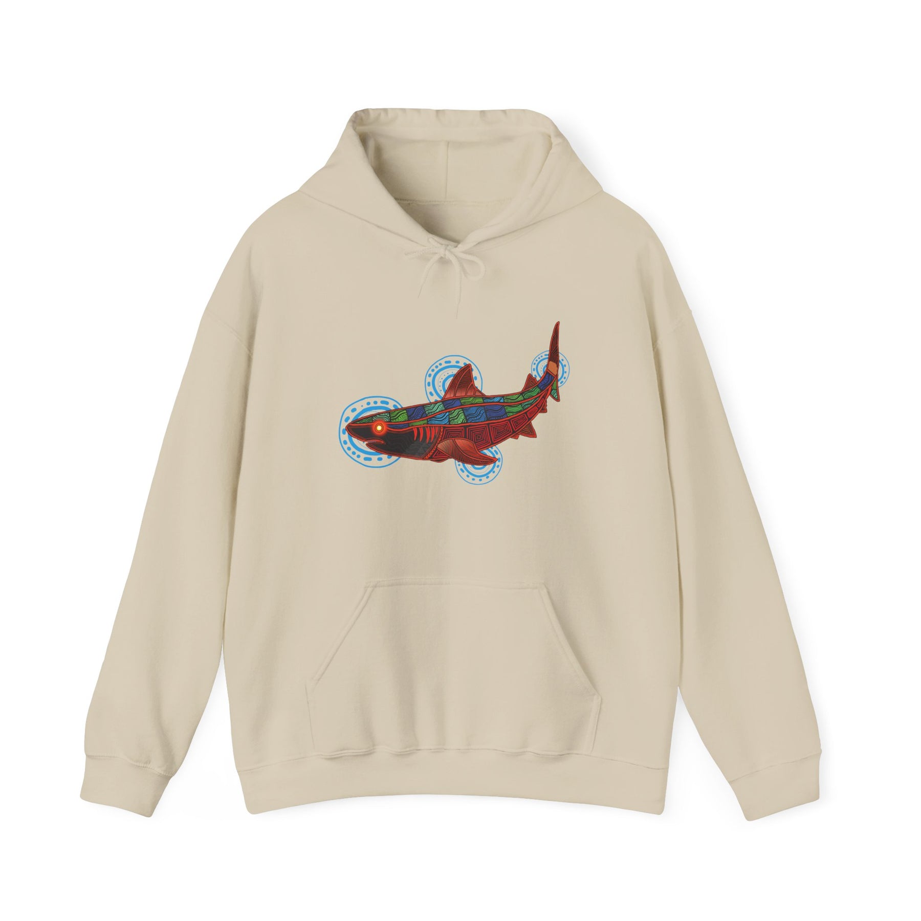 "Tiger sharks are one of the top predators of the ocean. They can sometimes move through the water unseen—much like potential threats that life may bring, often hidden and resulting in drastic circumstances. The artwork is a reminder to stay vigilant and observant in all aspects of life."