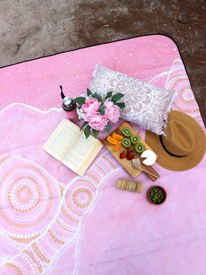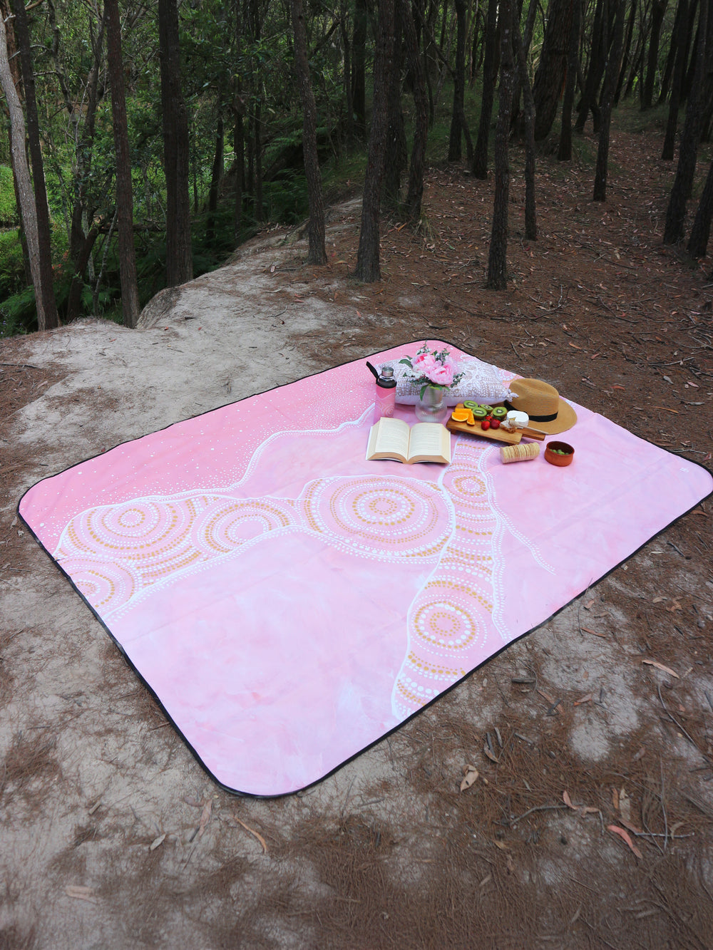 Discover the perfect companion for your outdoor gatherings with our outdoor picnic mats, featuring six stunning Indigenous Australian art designs.