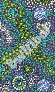 A celebration of 2021’s NAIDOC theme – Heal Country! In the Noongar language, "Boodjah" embodies the essence of the land. Blues symbolise the Wardarn (Ocean), greens embody our Boodjah, while whites honour our ancestors and their guiding spirits. Circles unite stars, suns, and families, fostering harmony and protection within this sacred Boodjah.