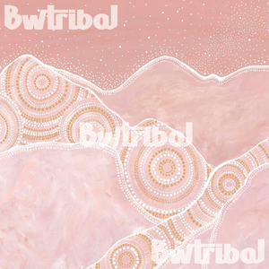 "Strength of the Mountains" is an artwork that captures the awe-inspiring beauty and power of the sandstone cliffs found in Gundungurra Country. The piece invites the viewer to imagine themselves walking along the cliff edges, where the magnificent hues of pink, orange, and beige reveal the very core of the mountains beneath their feet.