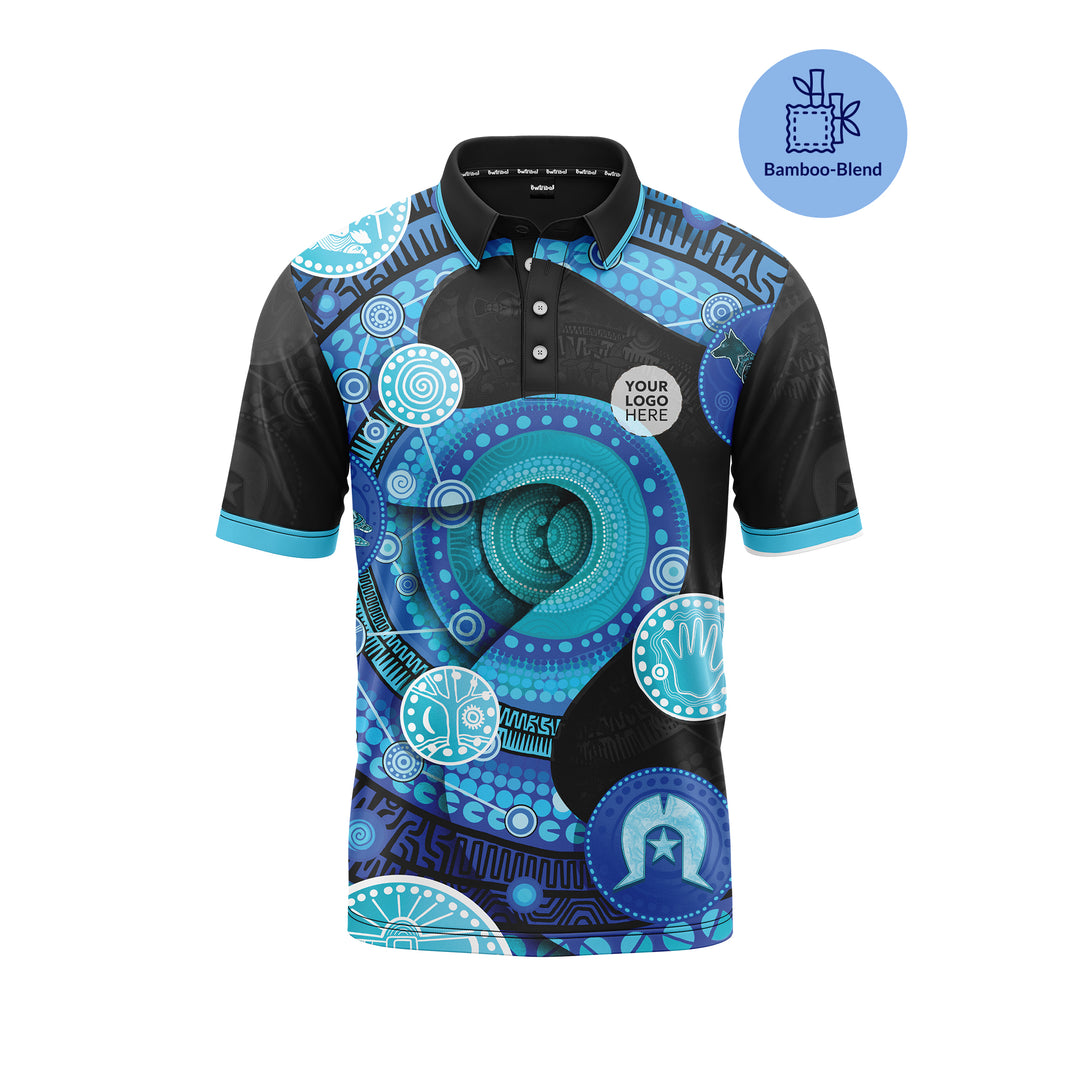 Crafted with stunning Aboriginal and Torres Strait Islander artwork, these custom corporate polos blend luxury, sustainability, and performance, making them the perfect choice for businesses, organisations, and teams wanting to showcase Indigenous culture while maintaining a professional look.