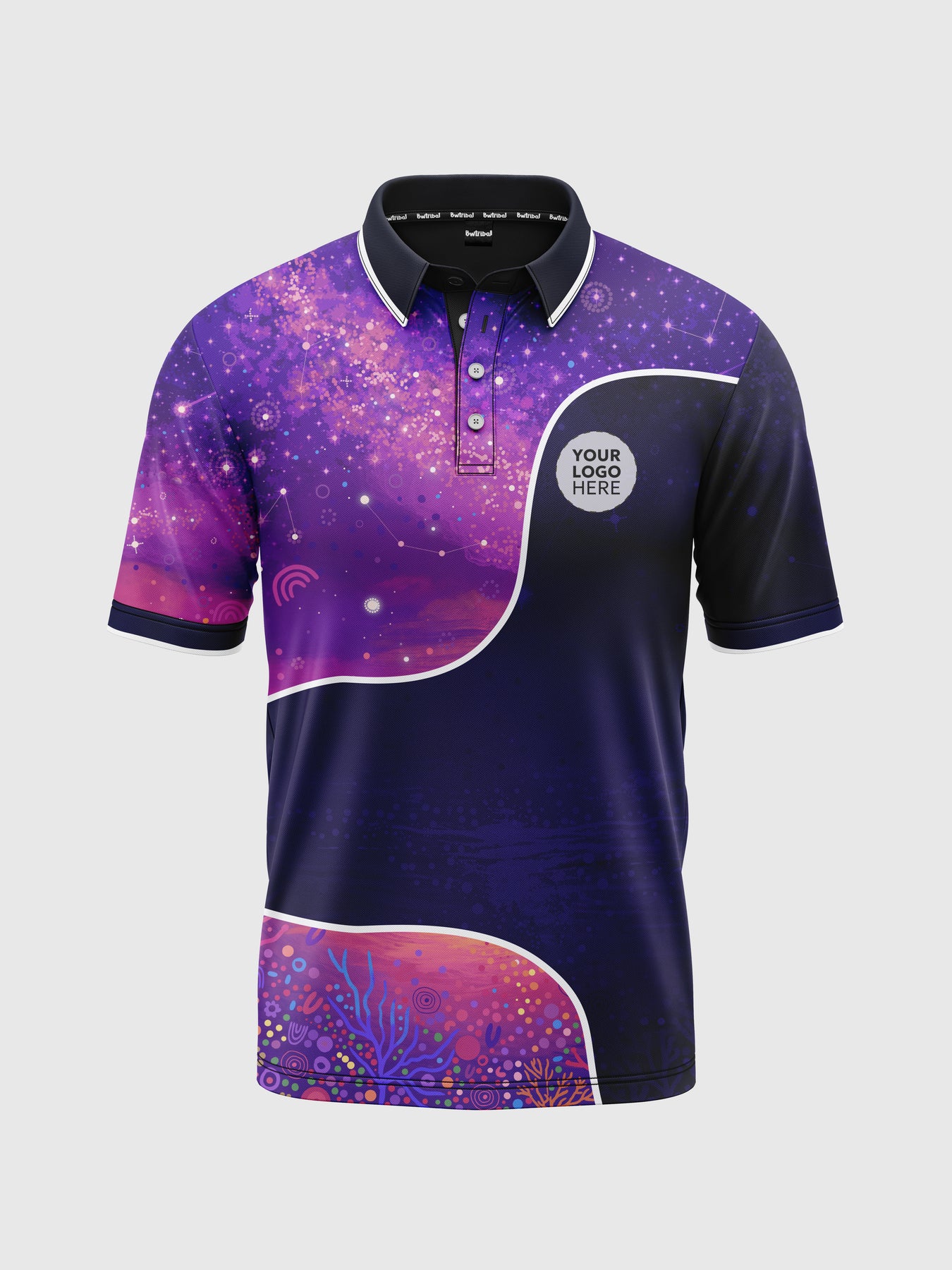 Showcase your brand's story with our Signature Custom Corporate Polos, featuring distinctive watermarked artwork across the garment.