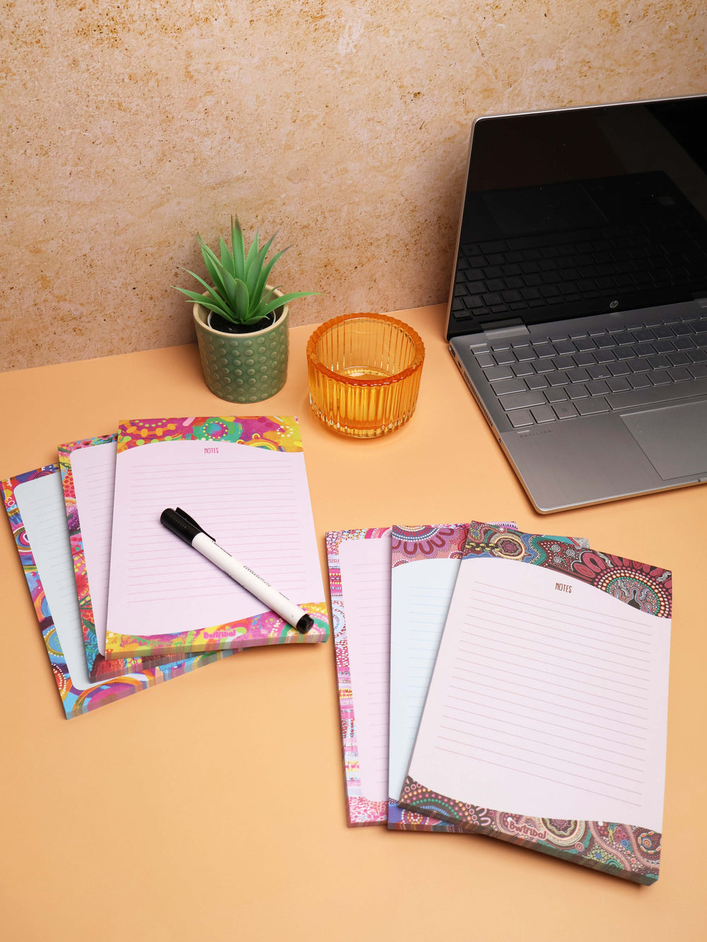 Unleash your creativity with our notepads! Each of the 80 lined pages in these notepads feature unique bordering artwork by our best-selling Indigenous artists. Perfect for jotting down ideas, sketching, or everyday notes, this notepad brings a touch of Australian culture to your daily routine. Support Indigenous artists with every page!