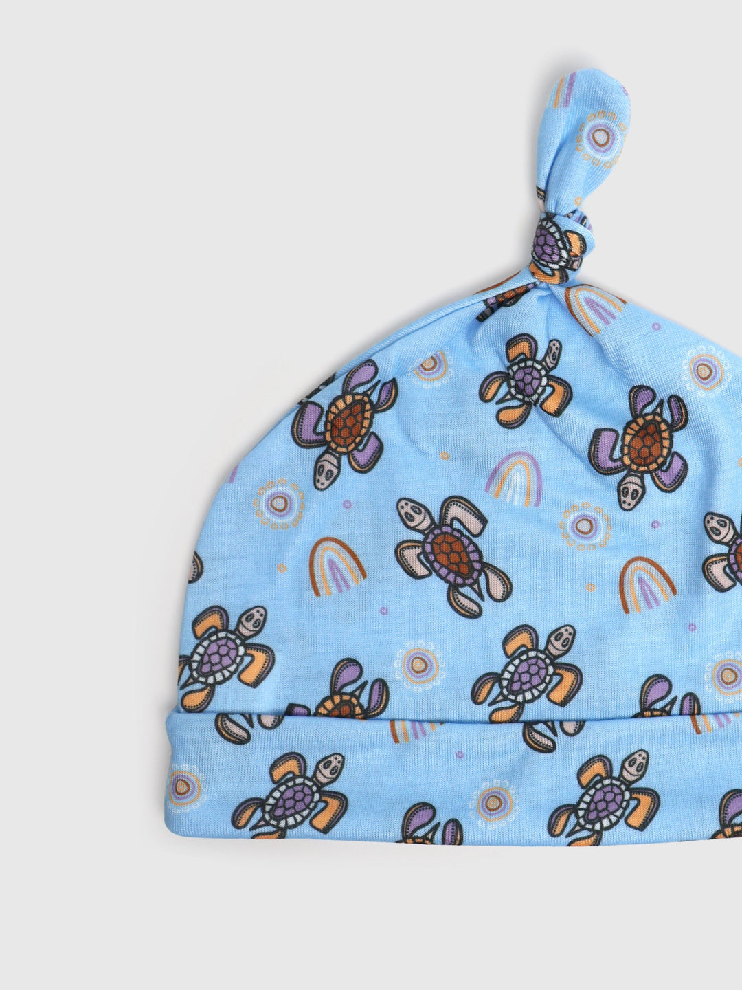 our Aboriginal art baby beanies are made from super comfy 100% polyester jersey. They're soft on baby's skin but tough enough for daily wear. We've jazzed them up with eye-catching Aboriginal-inspired patterns, adding a bit of Aussie culture to your little one's look. Easy to wash and quick to dry, these beanies are a win for busy parents. Whether you're after a practical baby hat or a unique pressie, these beanies tick all the boxes.
